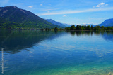 Landscape view of the Wolfgangsee Lake in the Salzkammergut region of Austria near Salzburg