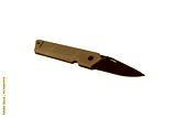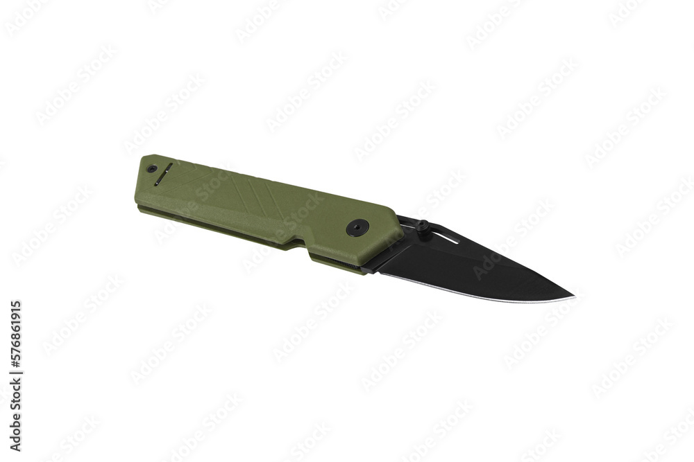 Pocket folding knife isolate on white back. Compact metal sharp knife with a folding blade.