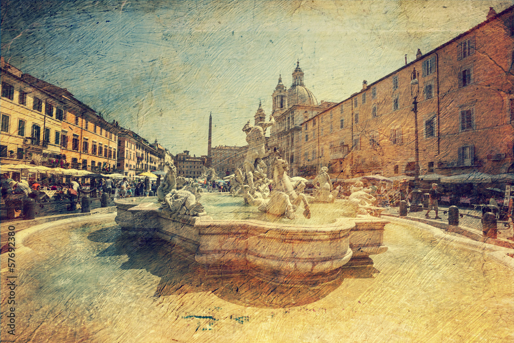 Piazza Navona, Rome. Italy. Picture in artistic retro style.
