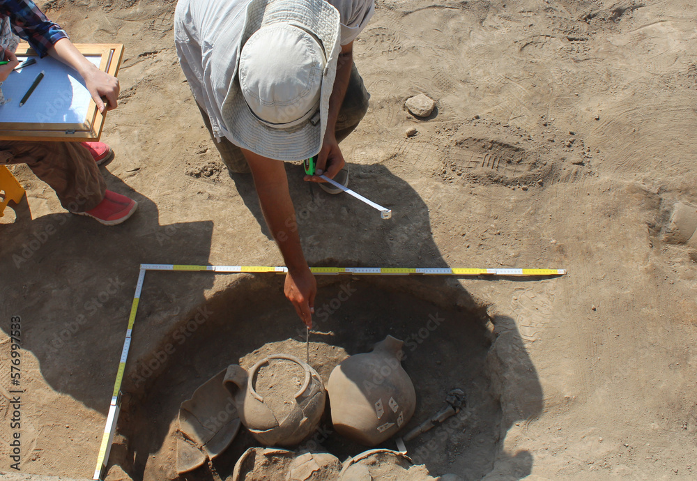 Archaeologists Documenting Pottery – Field Sketching at an Excavation
