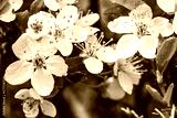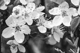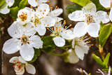 Cherry tree in bloom. White small flowers with delicate petals, pistils stamens Macro photo of a flowering cherries or apricot tree in spring garden. Flowering branches of fruit trees in the orchard.