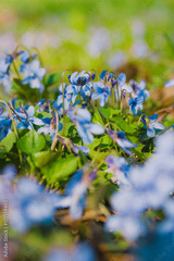 Blooming forest violet Viola odorata. Small fragrant violet flowers in bloom against a green natural background. Lilac wildflowers in bloom in garden, park, woods. Spring landscape. Selective focus.