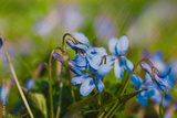 Blooming forest violet Viola odorata. Small fragrant violet flowers in bloom against a green natural background. Lilac wildflowers in bloom in garden, park, woods. Spring landscape. Selective focus.