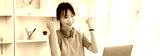 Joyful, Surprised or shocked Asian woman raised her arms all the way because she did a good job the boss gave her a big bonus making her very happy, Raise your hand, Smiling and screaming for success.