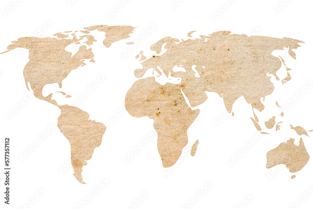 World map on old brown grunge paper