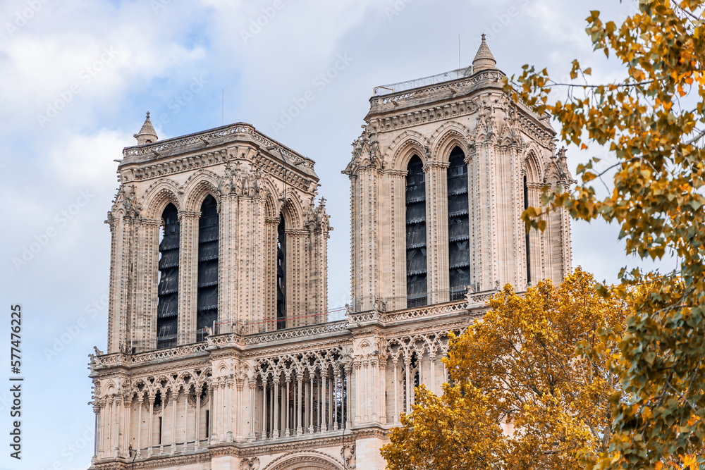 Bell towers of Notre-Dame de Paris cathedral in Autumn