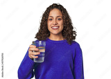 A young caucasian woman with athletic build and sportswear holding a glass of water in her hand, taking a refreshing break and promoting healthy hydration habits.