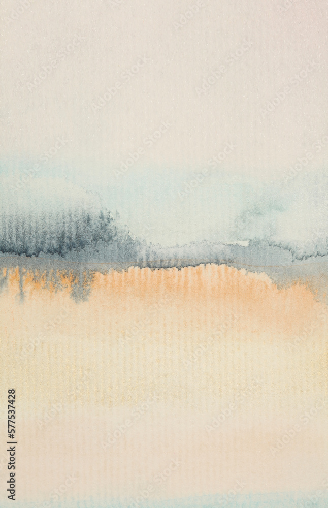 Art wet flow watercolor landscape smear blot painting. Abstract texture color stain brushstroke paper background.