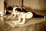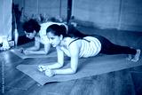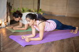 Young indian asian girls doing abdominal exercise workout at indoor yoga studio. Fat burn or weight loss.