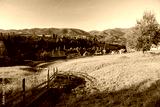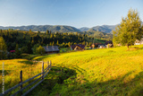 Green rolling countryside in the morning light. Carpathian mountains, Ukraine.