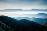 A splendid view of the alpine valley in morning light. Carpathian mountains, Ukraine.