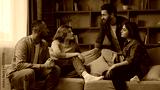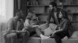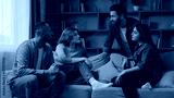 Group friends ethnic diverse women and men multiracial companions business people sit on sofa discuss plans talk indoors approve cooperation stacking hands together in pile team gesture unity teamwork