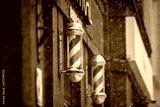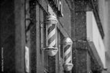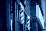 Barber pole on building with a lot of snow in storm Riga, Latvia