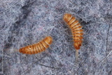 Larva, larvae of carpet beetle Anthrenus, Trogoderma, Attagenus, Dermestidae, Skin beetles family a synanthropic pest which lives in houses and apartments.