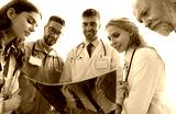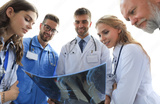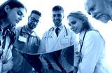 Group of doctors checking x-rays in a hospital.