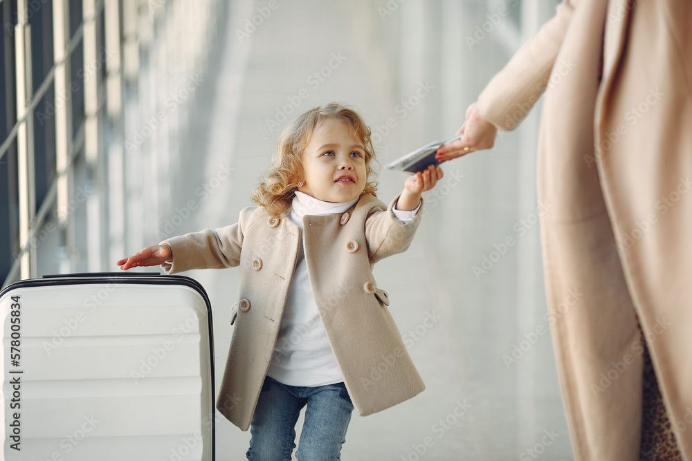 Mother with daughter at the airport