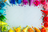 Colorful rainbow birthday party border frame background