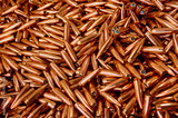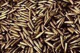 Large caliber copper shells pile for riffle as background