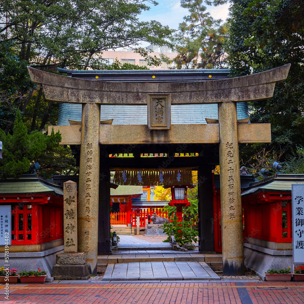 Fukuoka, Japan - Nov 21 2022: Suikyo Tenmangu Shrine was originally located in Imaizumi area and moved to present site by Kuroda Nagamasa, first lord of Fukuoka Clan