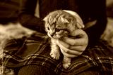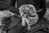Scottish fold kitten. Pet concept. Small british shorthair cat in children's hands
