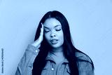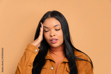 annoyed african american woman with sad face expression in beige colors. frustration, unhappy, problem concept.