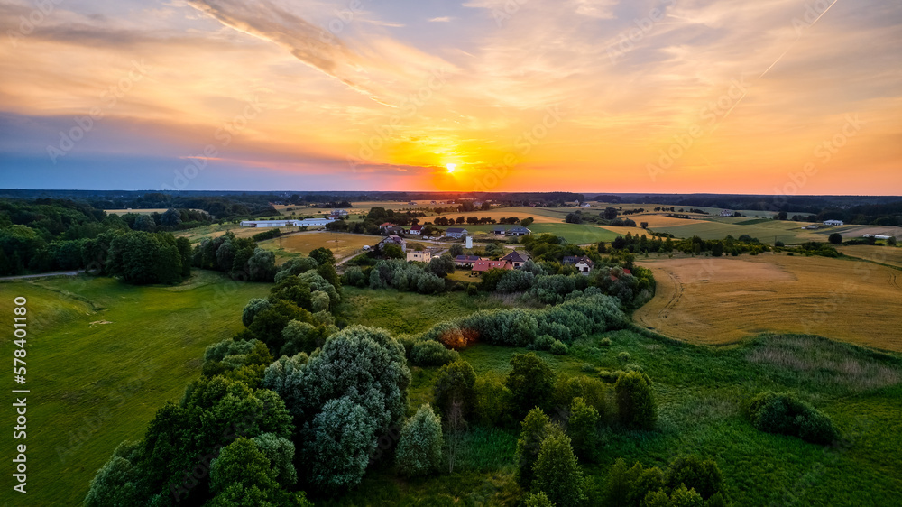 Immerse Yourself in the Majestic Scenery of Poland's Yellow Rapeseed Field at Sunset, with a Blue Sky as the Perfect Backdrop
