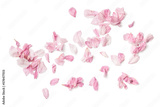 group of delicate pink cherry flower petals, isolated over a transparent background, romantic spring, summer, or wedding design element