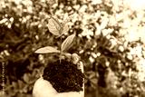 Hand holding young plant for planting. concept green world