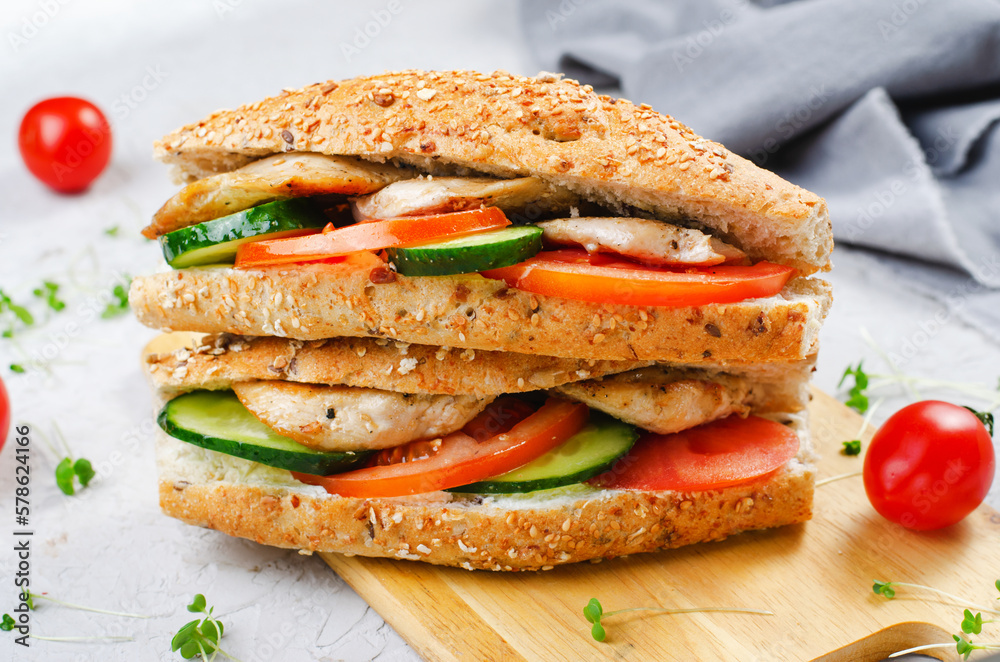 Grilled Chicken and Vegetable Sandwich, Healthy and delicious snack, breakfast, dinner or lunch