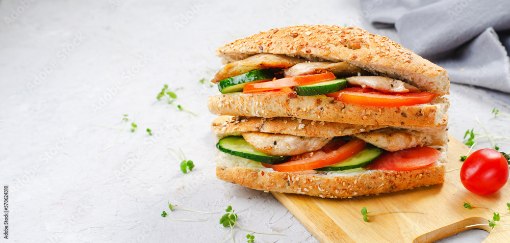 Grilled Chicken and Vegetable Sandwich, Healthy and delicious snack, breakfast, dinner or lunch