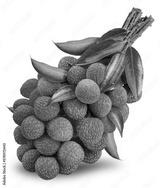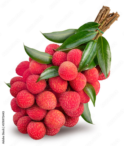 Bunch of lychees with leaves isolated on white background, Sweet lychees fruits with leaves on White With clipping path.