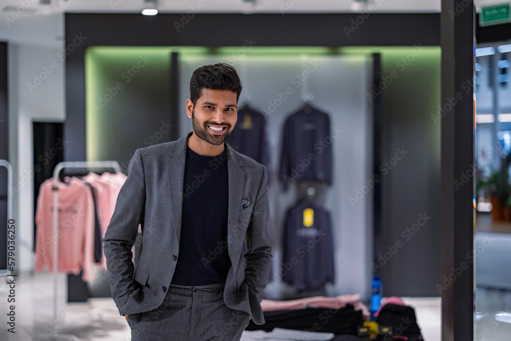 Young man shopping in clothing store