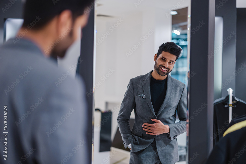 Young man shopping in clothing store