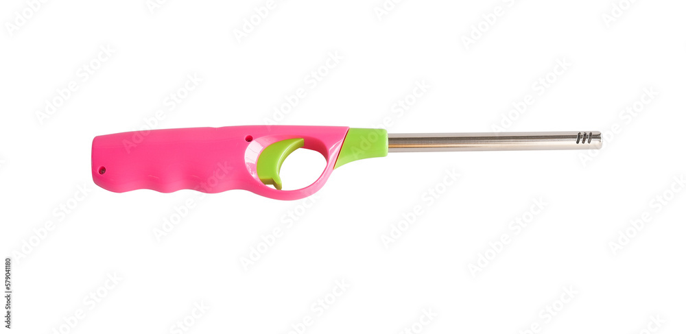 Hand hold Gas lighter gun for gas stove, candles, campfire on white background.