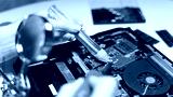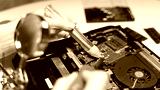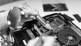 computer repairman soldering chip soldering iron
