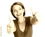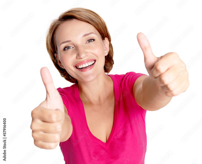 Portrait of a beautiful adult happy woman with thumbs up sign