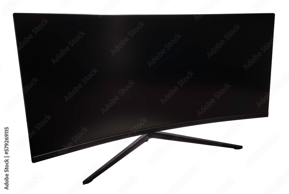 Ultrawide lcd monitor screen isolated on white background, Front view of television or computer screen on white PNG file.