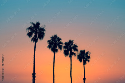 Palm trees at sunset, vintage California summer vibes