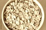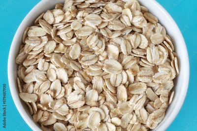 Close up picture of organic oat flakes in a bowl, selective focus.