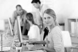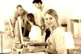 Young girl in office working on desktop computer