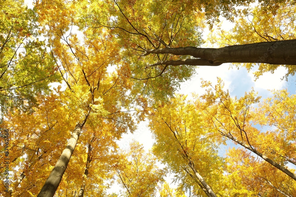 Autumn beech trees on a sunny morning