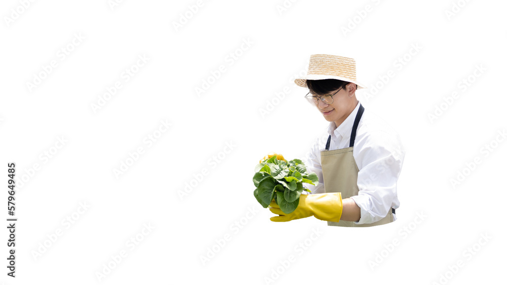 Owner of a hydroponics vegetable garden inspects agricultural produce in a greenhouse in preparation for delivery to consumers, Organic farming and organic vegetables, Healthy and vegan food concept.