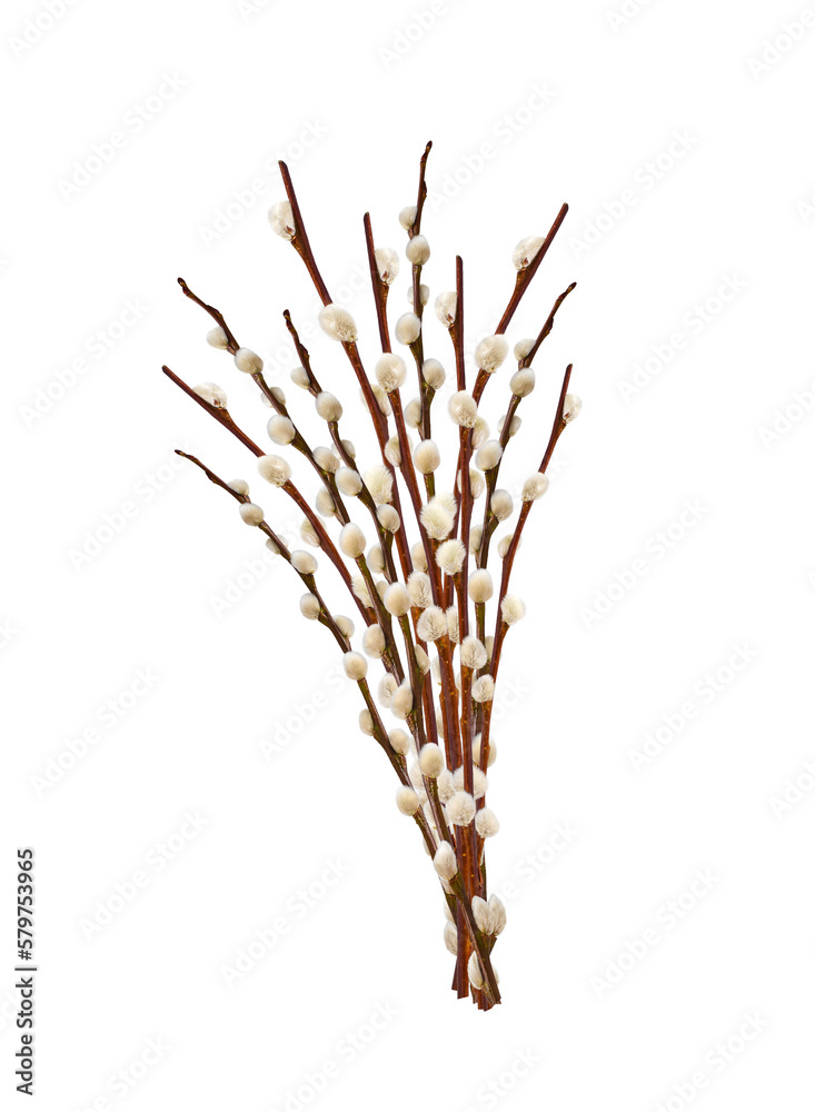 A bunch of Pussy willow spring stems isolated cutout on transparent