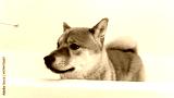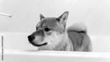 the dog in the bathroom takes a shower