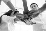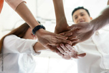 holding hands for strong teamwork and volunteer to public service action, people joined hand in hands partner agreement for great support great performance at business office background together.