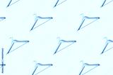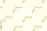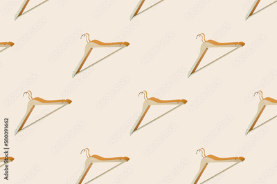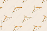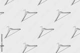 Many coat hanger on pastel background with shadows. Concept for sale, shop, store, second hand, online trade, brand resale platform. Pattern. Retail, business concept. Banner