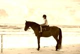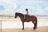 Kids riding horse on beach. Children ride horses.
