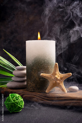 Spa concept. Candle for relax, aromatherapy and interior design