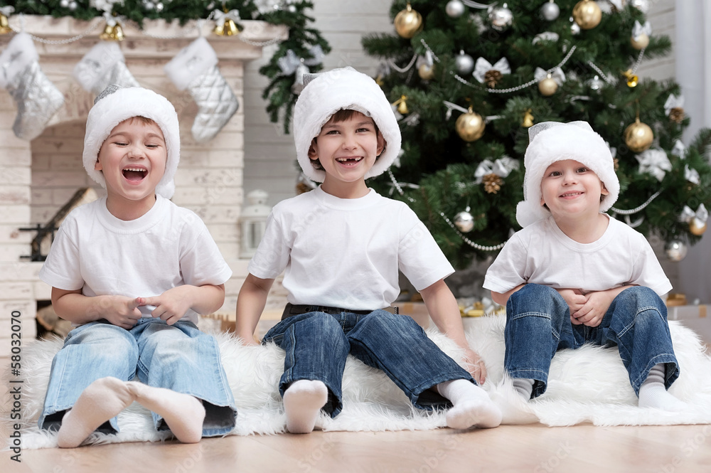 Three little boys having fun at the Christmas Tree