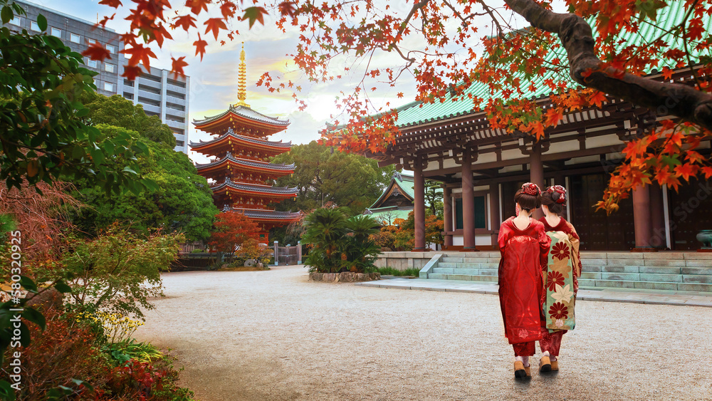 Fukuoka, Japan - Nov 30 2022: Tochoji Temple located in Hakata district. First built by Kobo Daishi by the sea, moved to current place by Kuroda Tadayuki, designated a historical site by Fukuoka City